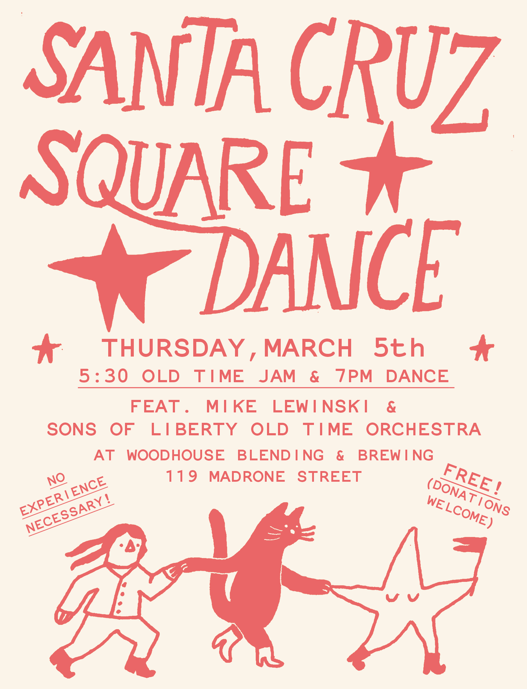 Thursday April 2nd — Santa Cruz Square Dance at Woodhouse Brewing with Connor Maguire & Someone’s in the Kitchen